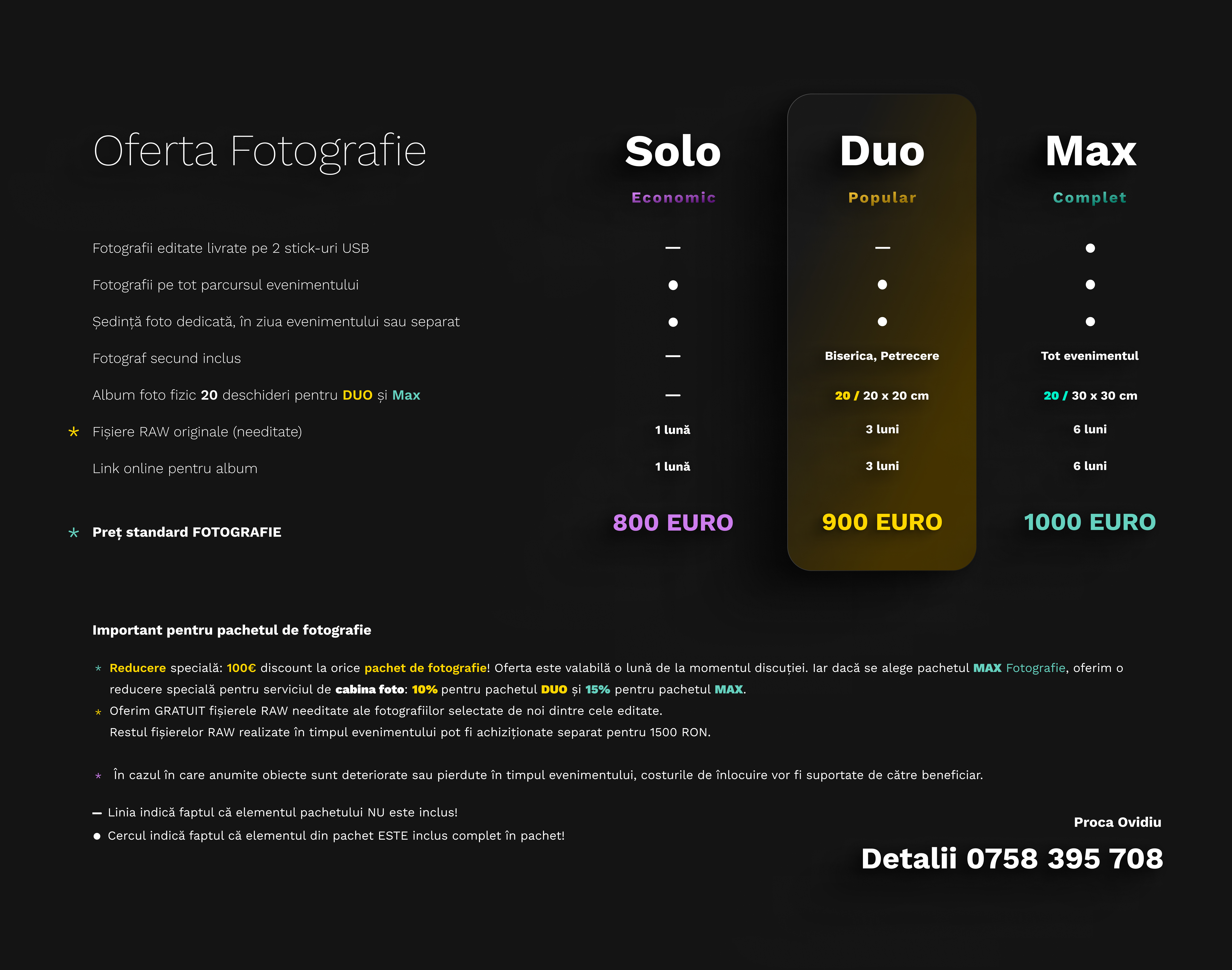 Album foto fizic 15 pt SOLO sau 20 deschideri pt DUO și Max